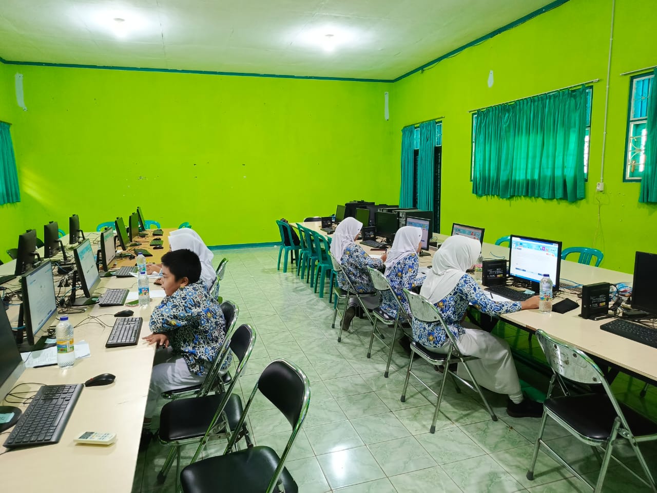 Keterangan Gambar : Sidang sedang mengerjakan soal Pra OSN untuk mata pelajaran IPA, IPS, dan Matematika